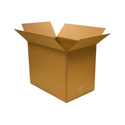 Ruskea pahvilaatikko jonka korkeutta voi säätää. Laatikossa on nuuttaukset joiden avulla pahvi taittuu siististi.